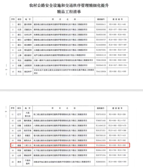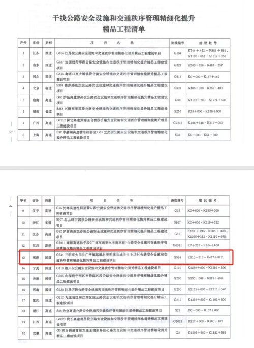 5月底,交通运输部办公厅、公安部办公厅正式发文确定全国公路安全设施和交通秩序管理精细化提升精品工程。经部级层层筛选、现场复核、集中审核,我省2个路段入选,为国道G534线、乡道Y012莘大线。在入选的全国40个精品工程中,我市数量居全国地级市首位。