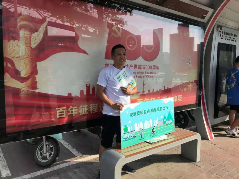 志愿者们身着统一绿色宣传文化衫并骑上纯电共享自行车由市区东新四路出发沿江滨城市慢行道骑行至城投广场,引导广大市民在出行中积极选用共享自行车等绿色出行方式。骑行结束后,志愿者还到万达广场等市民聚集区向来往的市民分发绿色出行宣传海报,宣传海报紧扣“深化交通绿色发展 助力碳达峰碳中和”行业主题,全面展示“十三五”绿色低碳交通运输体系的建设成效。用通俗易懂的数据和例子,倡导广大市民养成低碳生活习惯。