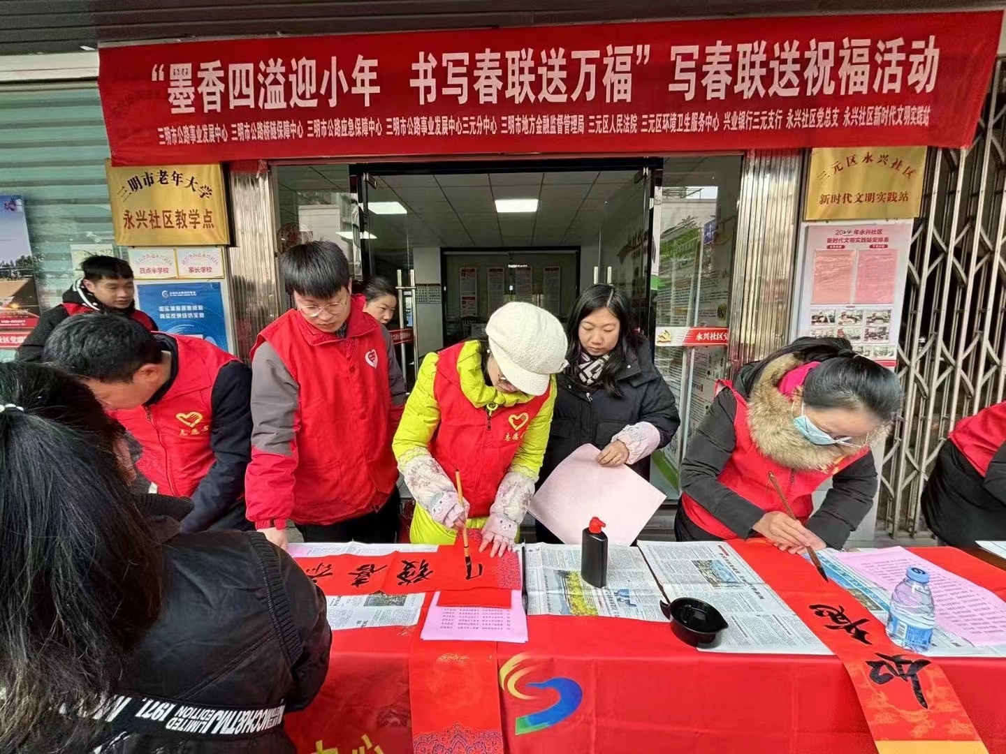 挥毫泼墨送春联,龙飞凤舞迎新春。为弘扬中华优秀传统文化,迎接龙年春节。1月24日上午,三明市公路事业发展中心开展“墨香四溢迎小年 书写春联送万福”写春联送祝福活动。活动不仅丰富了社区居民和单位职工的精神文化生活,还营造了吉祥如意,欢乐祥和的新年氛围。