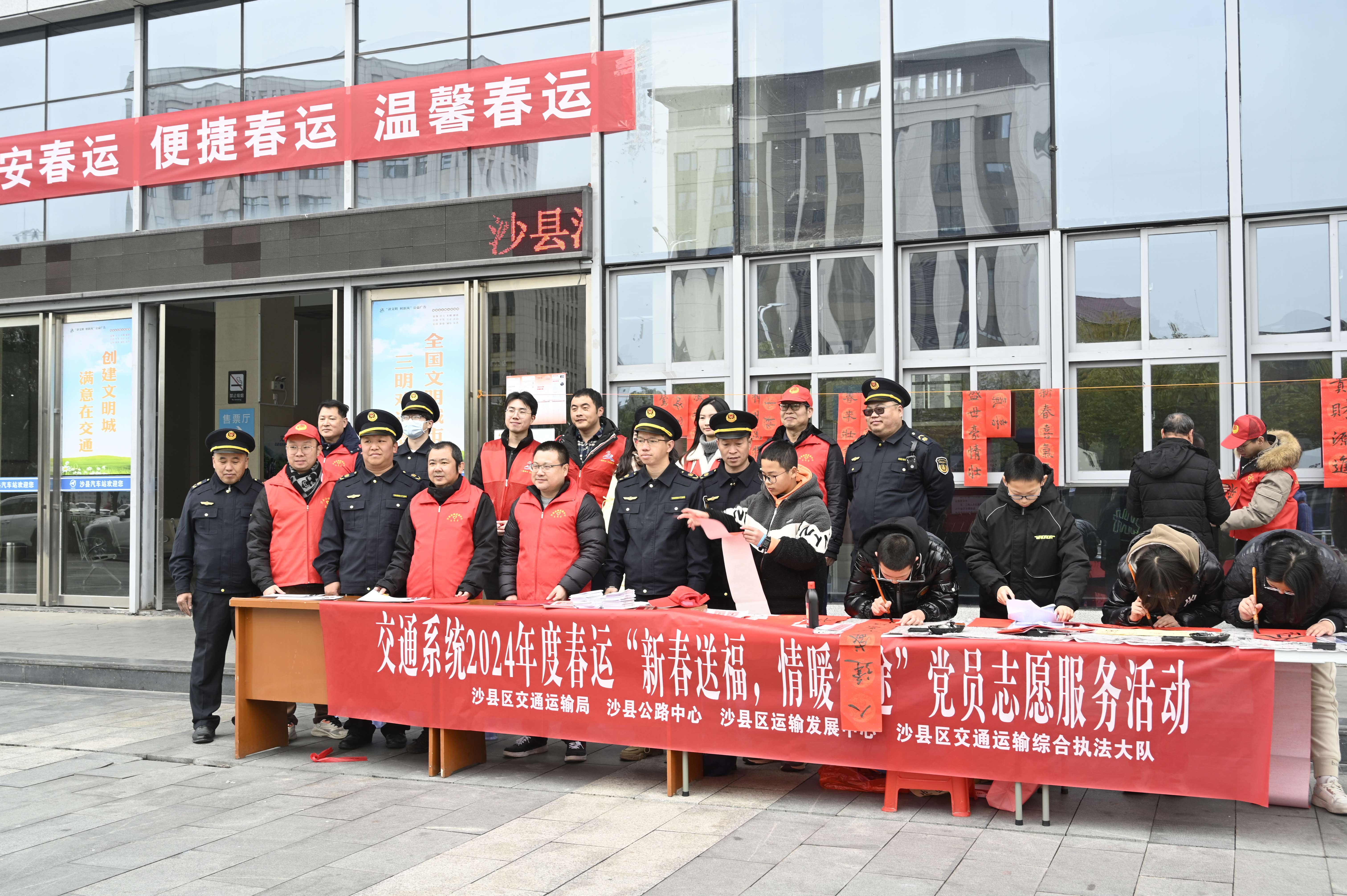 1月26日上午,春运首日,沙县区交通运输局联合沙县公路分中心于沙县区汽车站开展“新春送福 情暖征途”党员志愿服务活动。活动中,党员志愿者们向司乘人员发放宣传小册、赠送年味满满的对联和窗花、递送开水姜茶等,叮嘱司乘人员注意春运出行安全,切实强化安全管理,优化通行秩序。