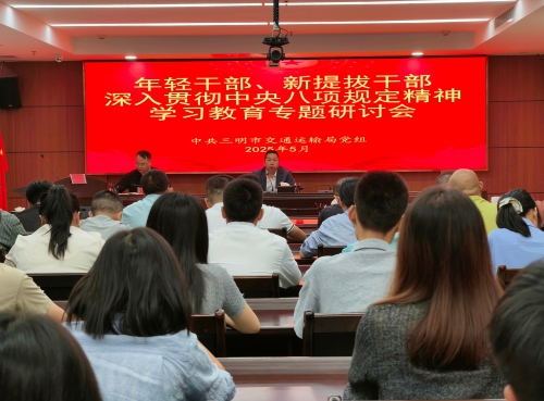 为切实抓好深入贯彻中央八项规定精神学习教育,不断提升年轻干部素养、锤炼过硬作风,5月27日,三明市交通运输局组织机关及局属70余名年轻干部、新提拔干部、关键岗位干部,召开深入贯彻中央八项规定精神专题研讨会,局主要领导出席会议并讲话。