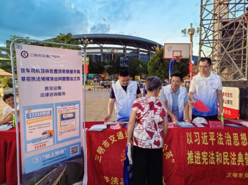 2025年6月27日,三明市交通运输局在三明万达广场开展交通运输信用宣传暨货车司机投诉处置效率和基层行政执法问题专项整治专题普法和“码上纳谏”推广活动。