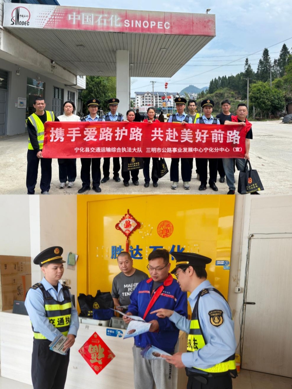为扩大宣传覆盖面,执法人员还走进镇内的两家加油站,向负责人、工作人员及过往司乘人员发放宣传资料,并委托加油站协助宣传,提醒加油的司机和乘客自觉遵守公路法规,拒绝超限超载,安全文明出行。